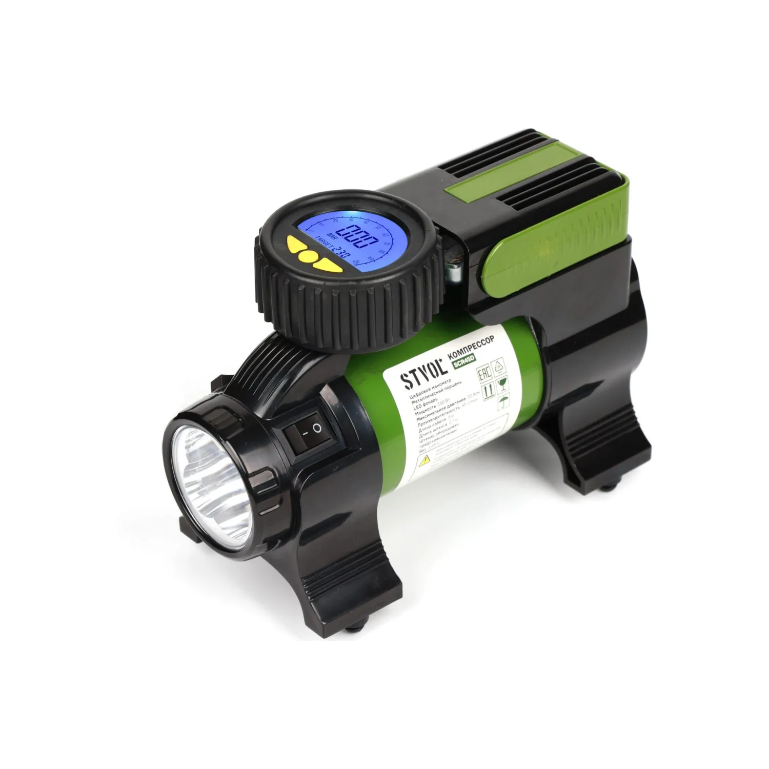 Компрессор автомобильный STVOL SCR45D, манометр, фонарь 45 л/мин, 14А