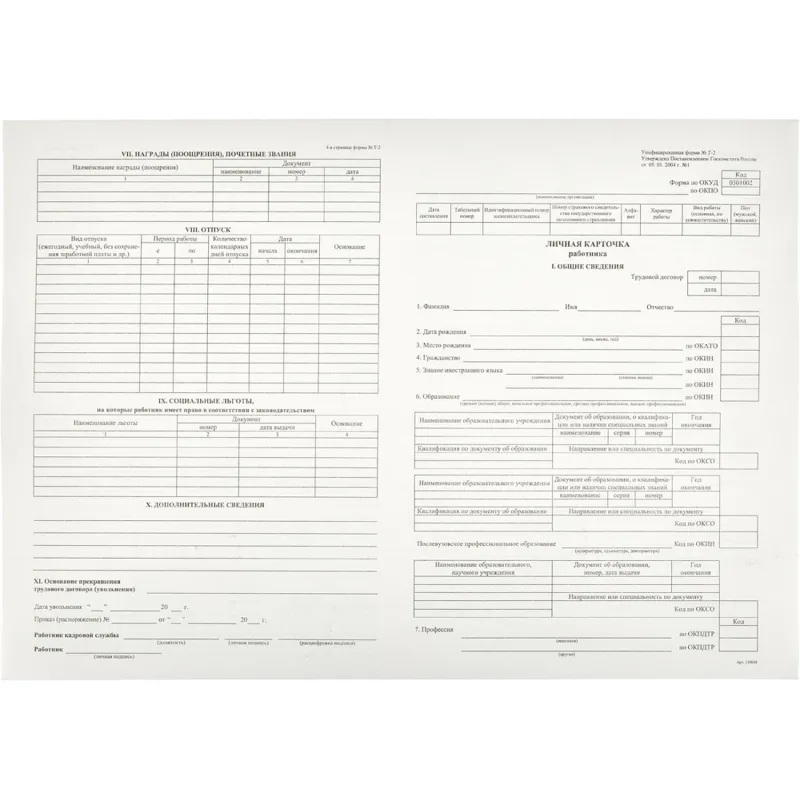 Бланк Карточка личная А3 Т2 (50шт/термопл.)