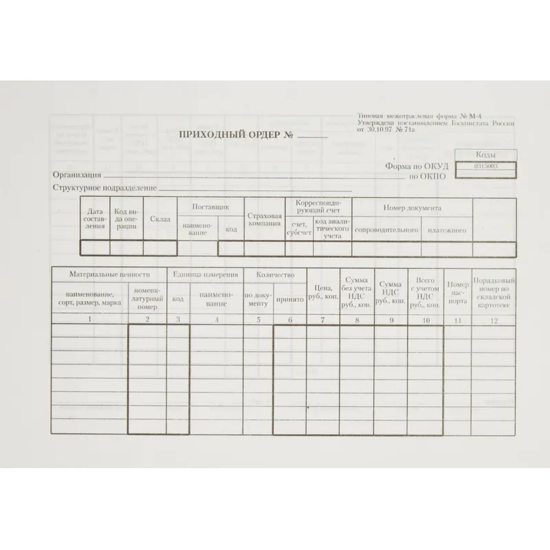 Бланк Прих.кассовый ордер (5кн.х100л.) офсет