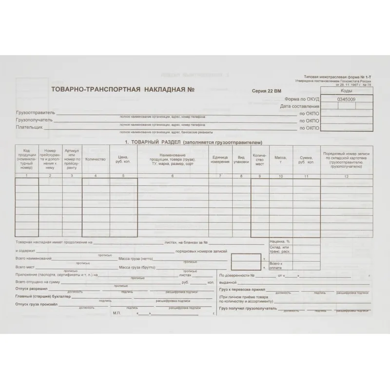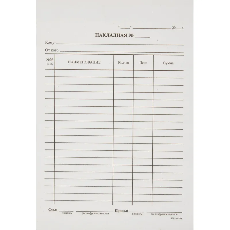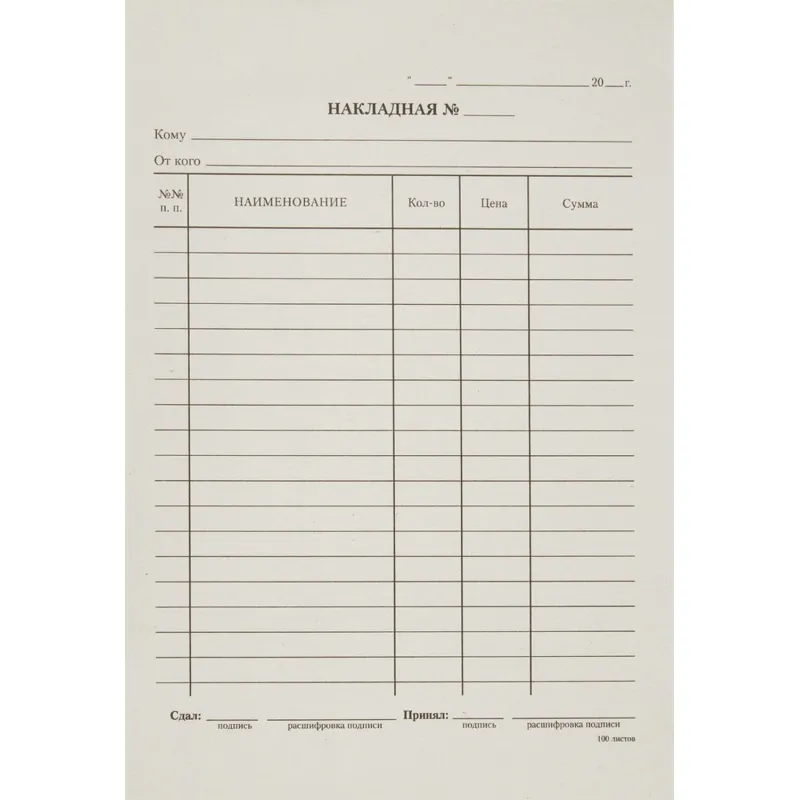 Бланк Накладная, А5,(кн100л), газетн.бум. 20кн/уп