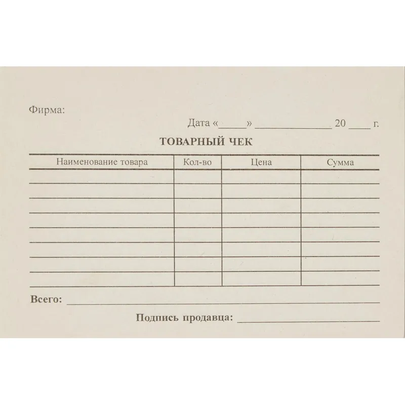 Бланк Товарный чек (кн.100л.), газетн.бум. 40 кн/уп