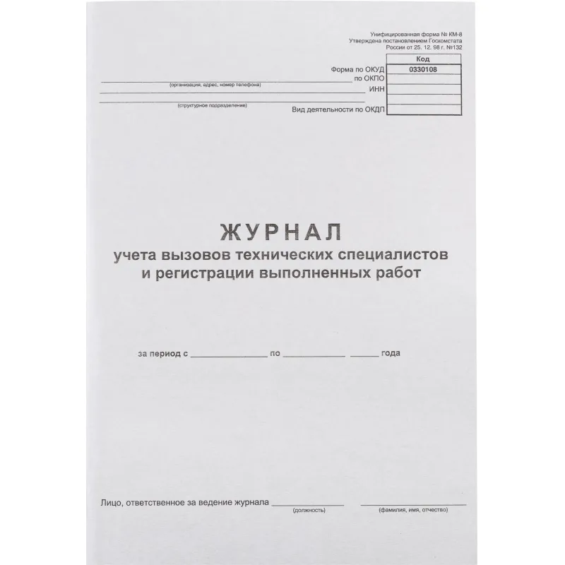 Журнал вызова техн специалистов А4 24л. г/б обл. картон