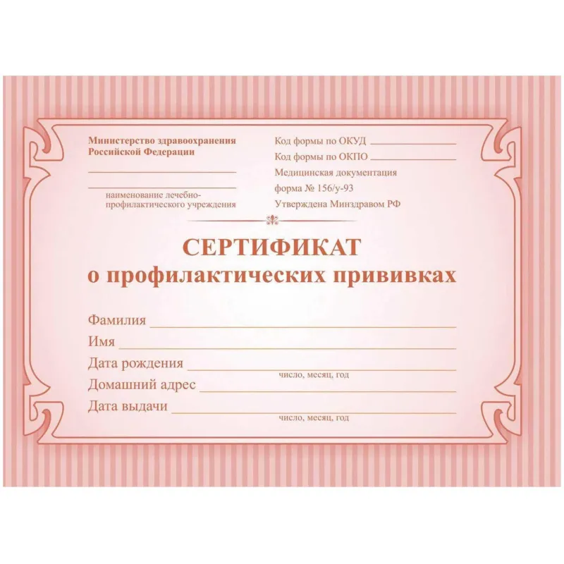 Сертификат о профилактических прививках красный А6 24л КЖ-401а 2шт/уп