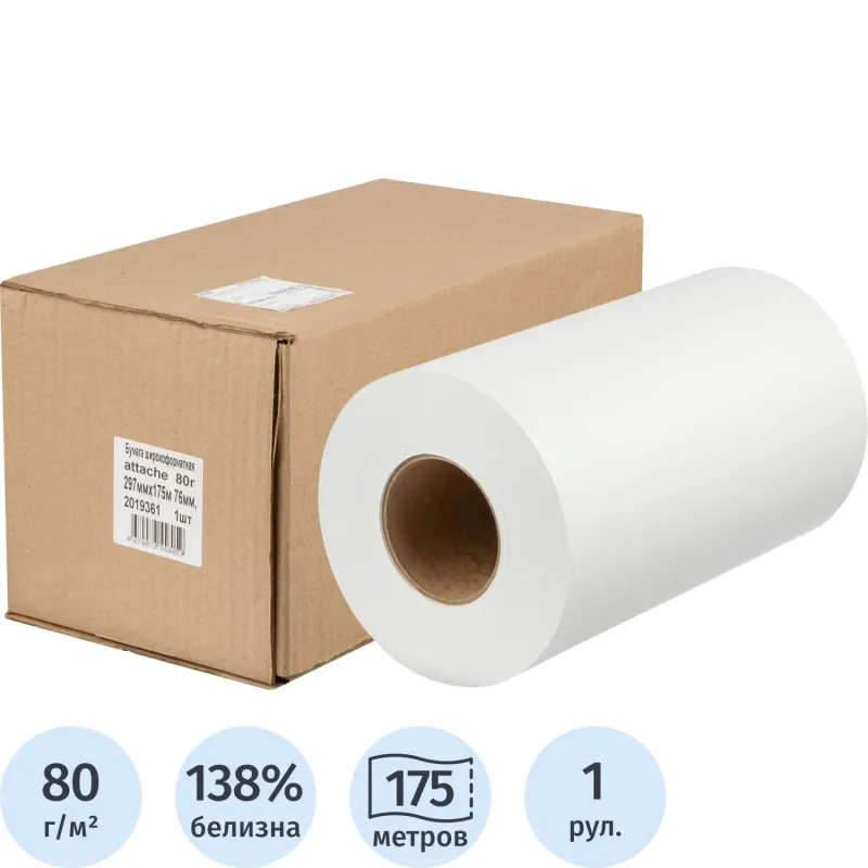 Бумага широкоформатная Attache 80г 297ммх175м 76мм