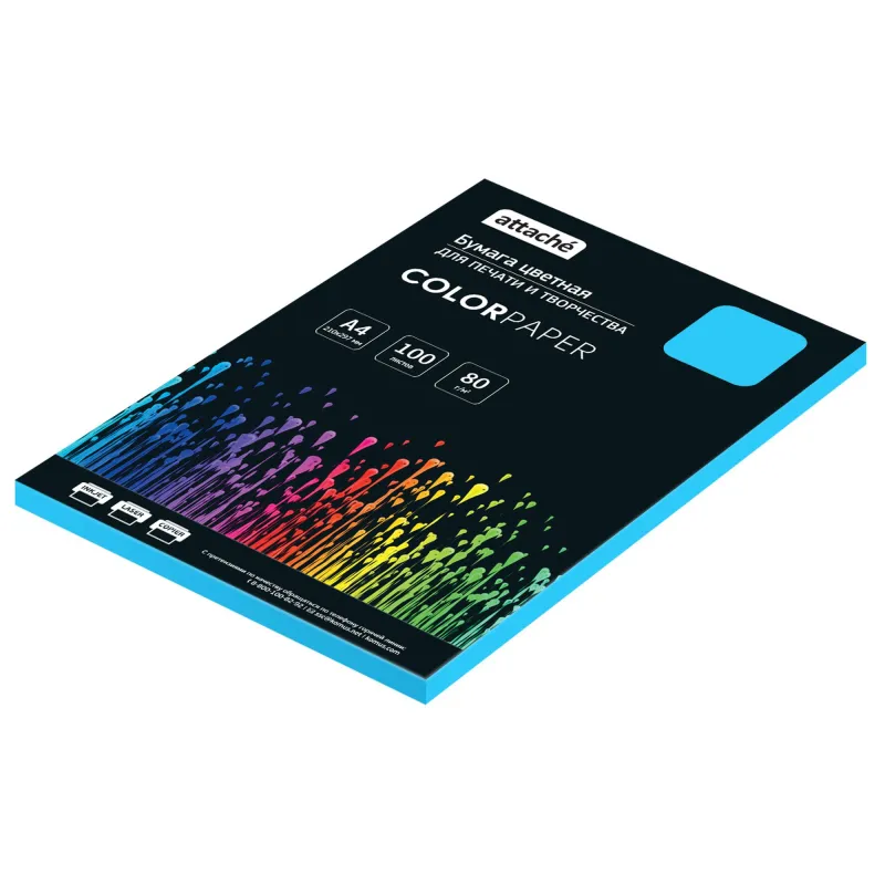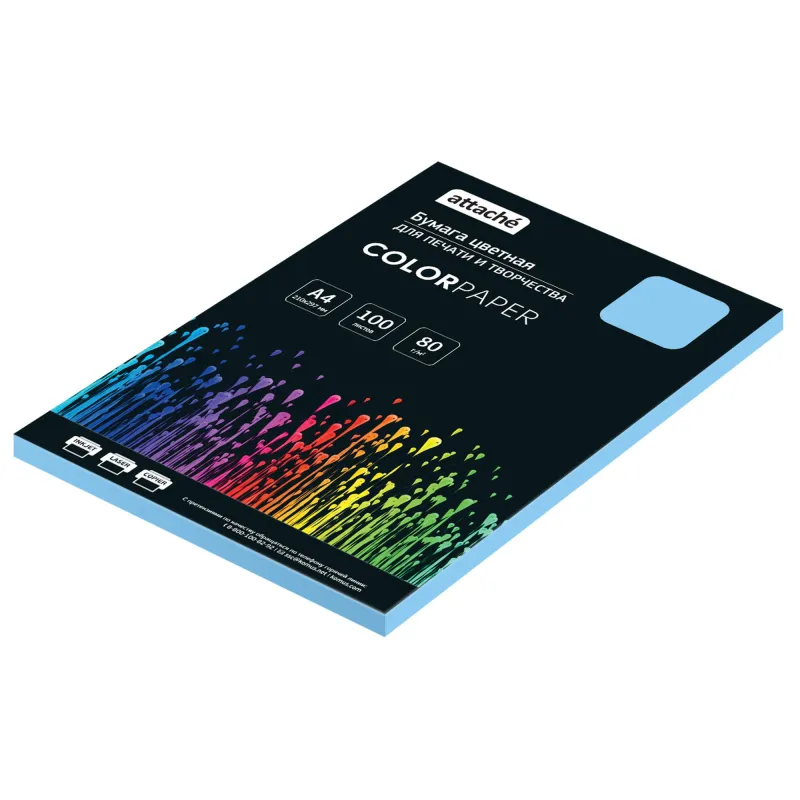 Бумага цветная Attache (голубой интенсив), 80г, А4, 100 л