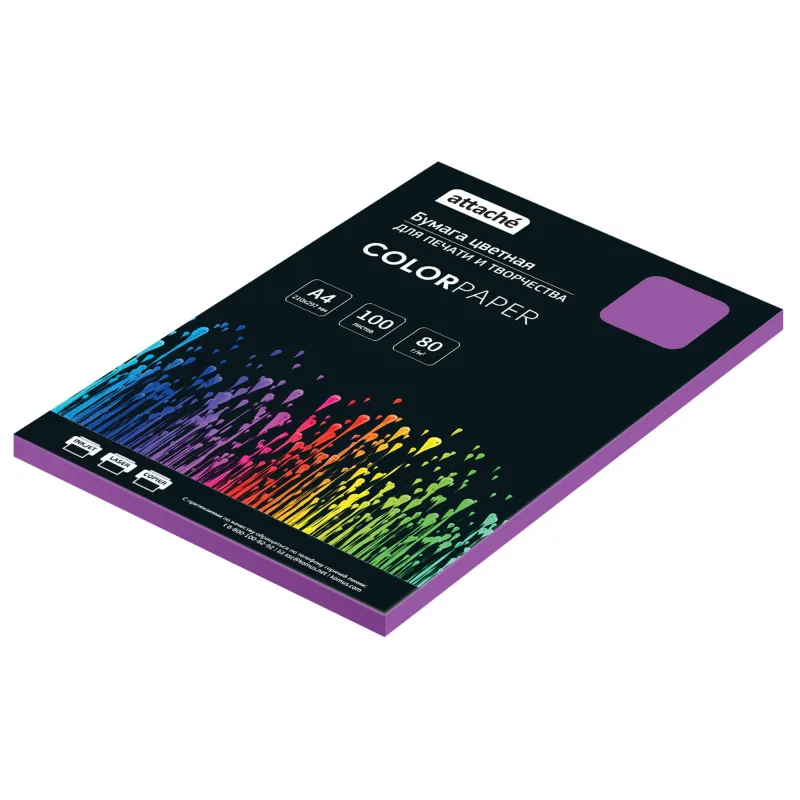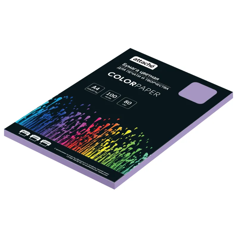 Бумага цветная Attache (лиловый интенсив), 80г, А4, 100 л
