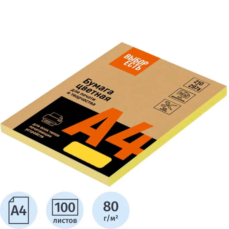 Бумага цветная Выбор есть (А4,75г,желтый неон) пачка 100л