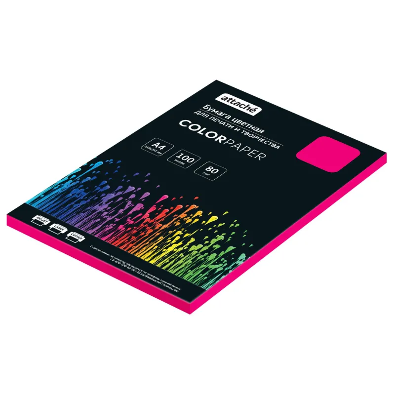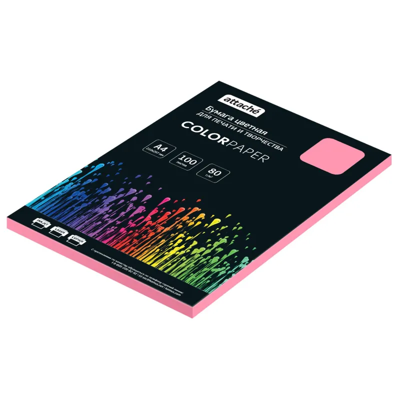 Бумага цветная Attache (розовый интенсив), 80г, А4, 100 л