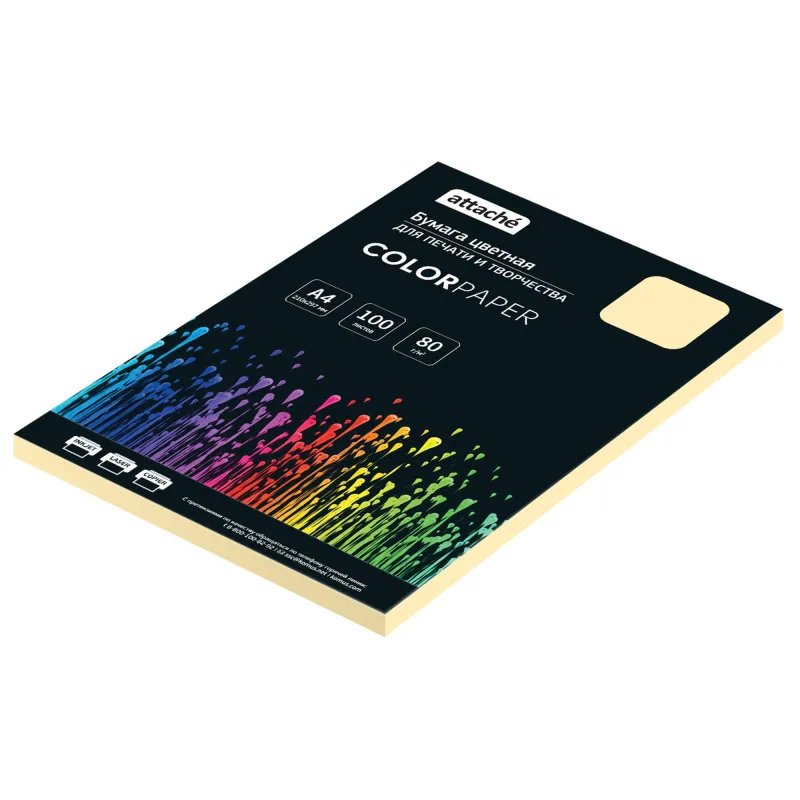 Бумага цветная Attache (солнечно-желтый интенсив), 80г, А4, 100 л