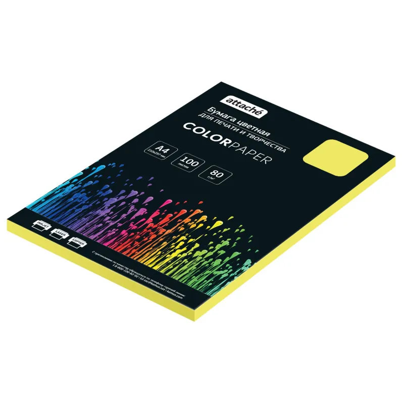 Бумага цветная (А4,80г,желтая пастель) пачка 500л