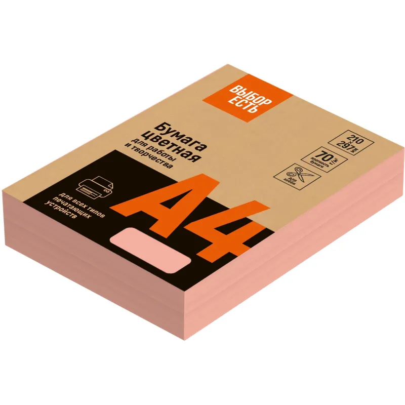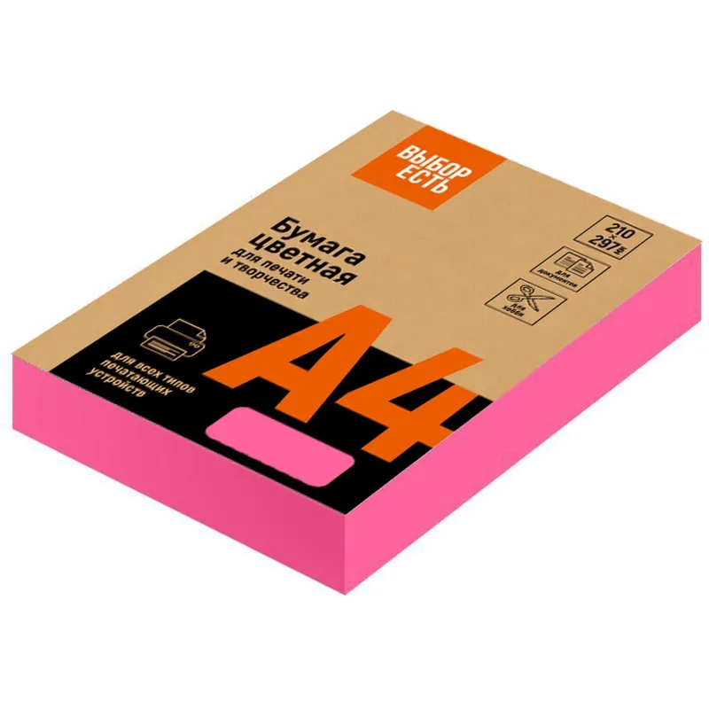 Бумага цветная Выбор есть (А4,75г,розовый неон) пачка 500л