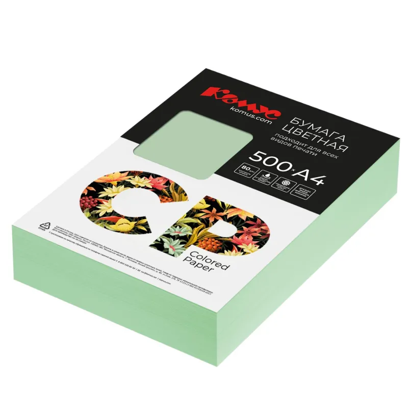 Бумага цветная Комус Color (зеленый интенсив), 80г, А4, 500 л.