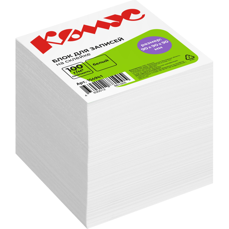 Блок для записей КОМУС запасной 9х9х9 белый блок/ 100г