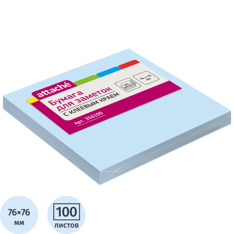 Стикеры ATTACHE с клеев.краем 76х76 голубой 100л