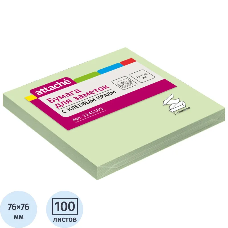Стикеры Z-сложения ATTACHE с клеев.краем Z-блок 76х76 салатовый 100л
