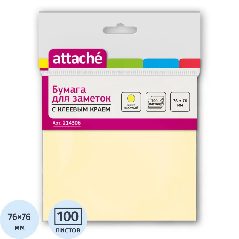 Стикеры ATTACHE с клеев.краем 76х76 желтый 100л