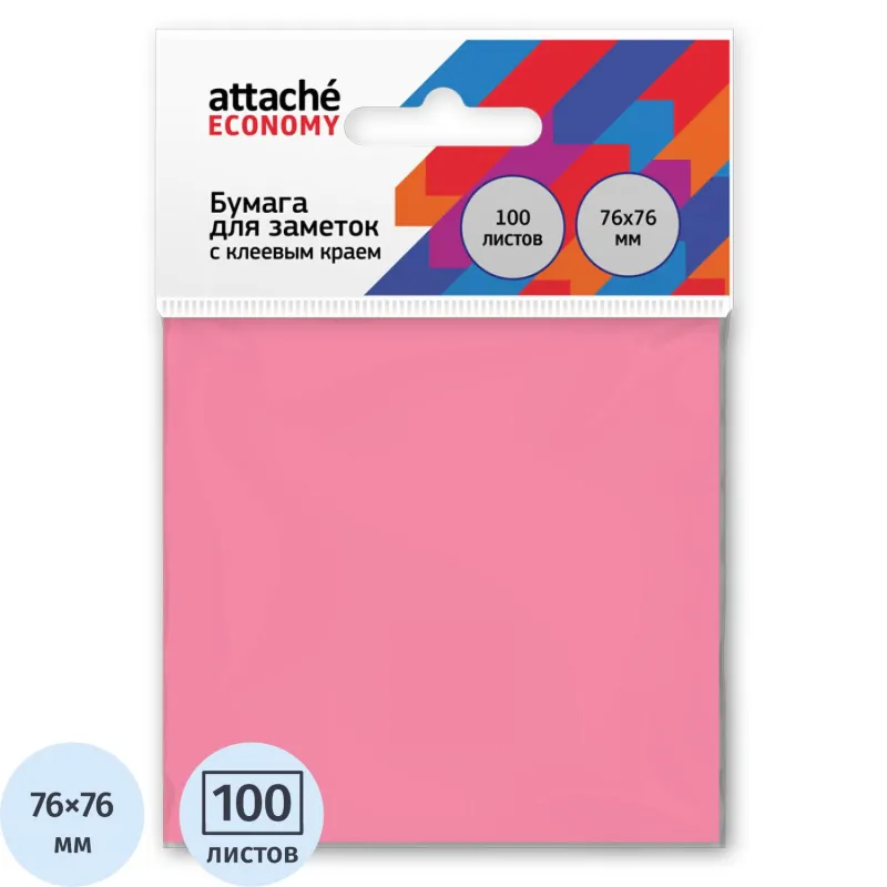 Стикеры Attache Economy с клеев.краем 76x76 мм 100 лист неоновый розовый