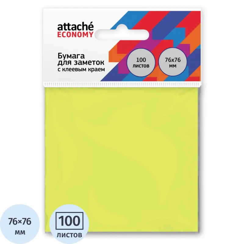 Стикеры Attache Economy с клеев.краем 76x76 мм 100 лист неоновый желтый