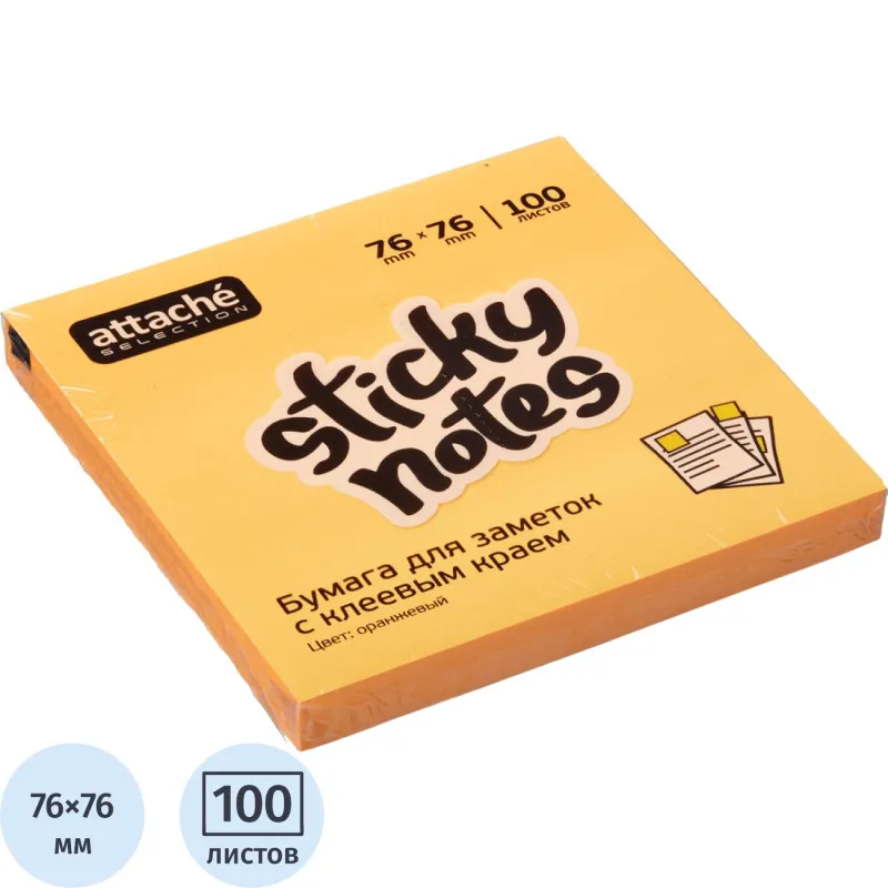 Стикеры Attache с клеев. краем 76х76, неон, оранж. 100л