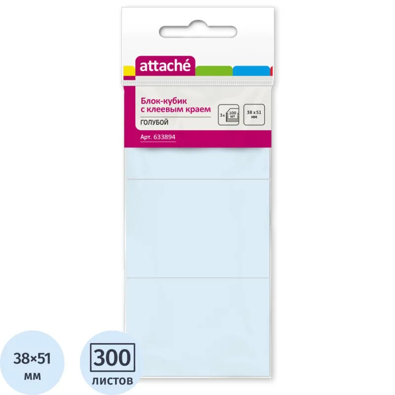Стикеры ATTACHE с клеев.краем 38х51 голубой 100л. 3 шт/наб