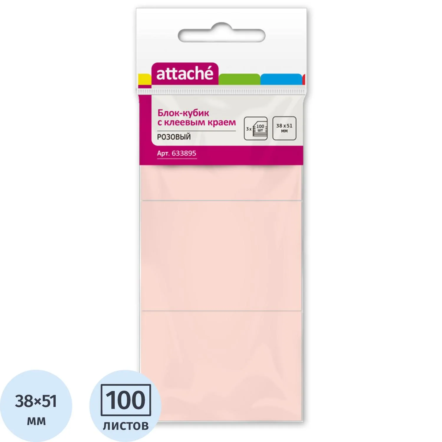 Стикеры ATTACHE с клеев.краем 38х51 розовый 100л. 3 шт/наб