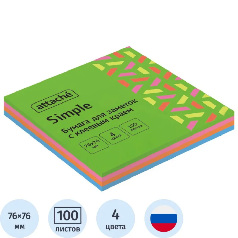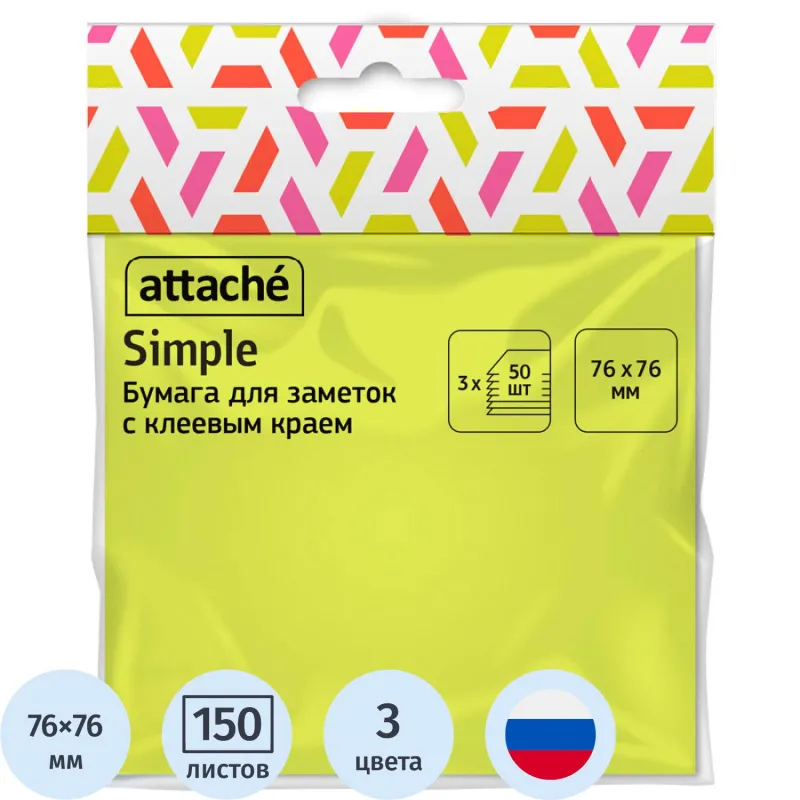 Стикеры Attache с клеев. краем 76х76, неон, 3 цвета 50х3