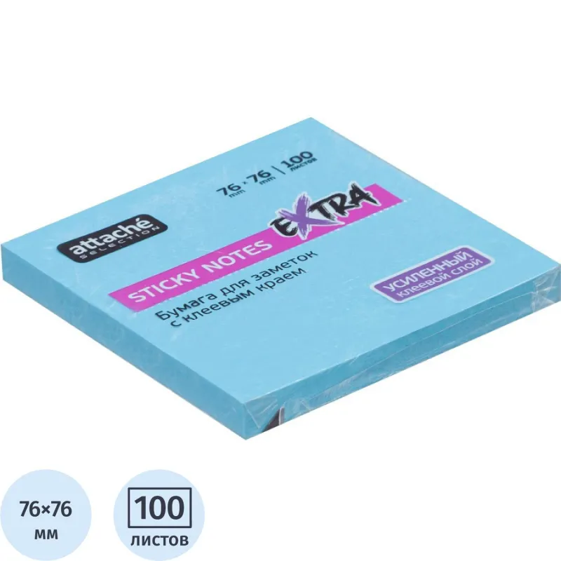 Стикеры Attache Selection Extra с клеев. краем 76х76, неон, голубой 100л