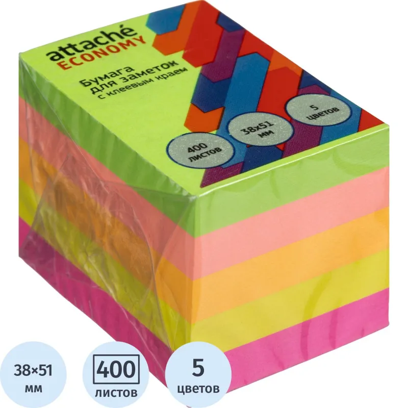 Стикеры Attache Economy с клеев.краем 38x51 мм, 400 лист, 5 неоновых цв