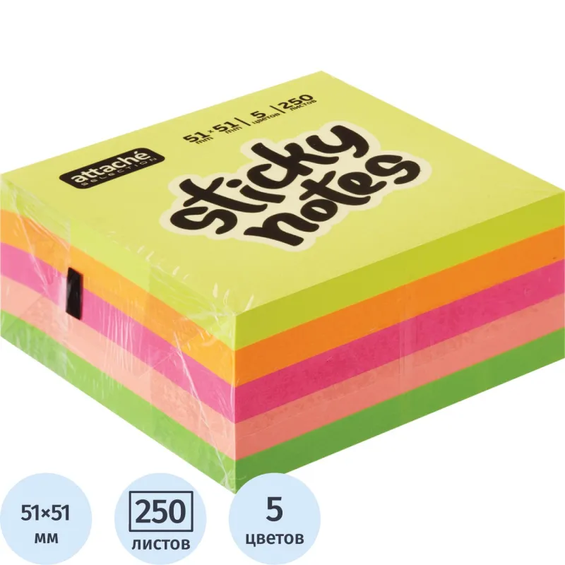 Стикеры Attache Selection куб 51х51, неон-3 4 цвета 400 л