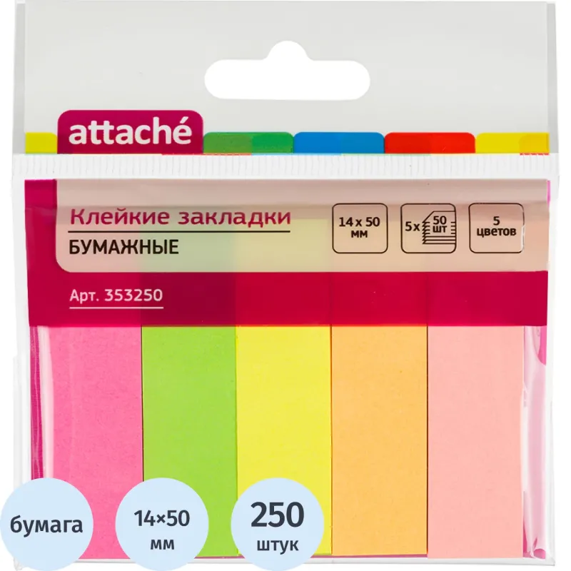 Клейкие закладки бумажные 5цв.по 50л. 14ммх50 Attache