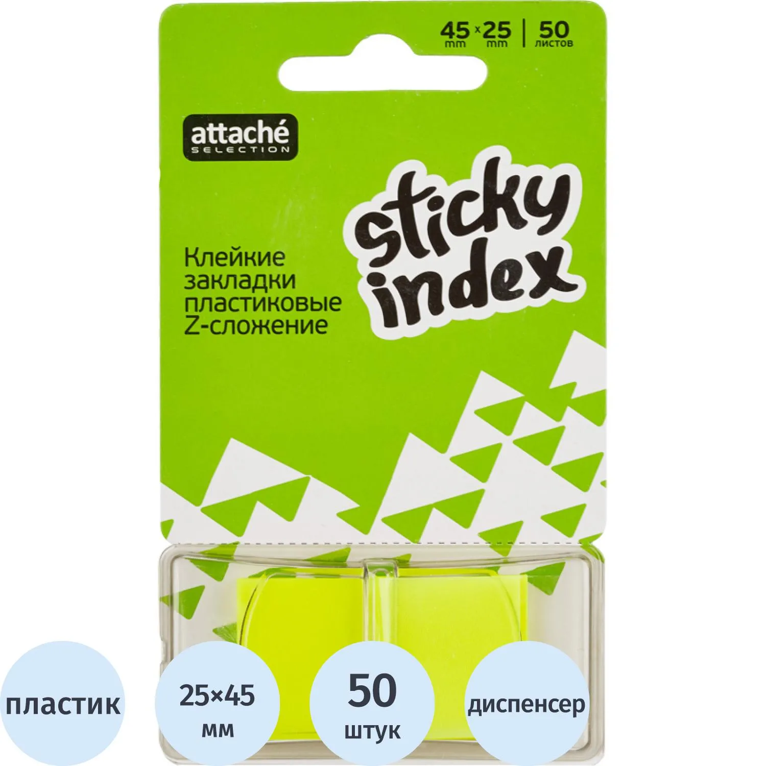 Клейкие закладки пласт. 1цв.по 50л. 25ммх45 неон желт Attache Selection