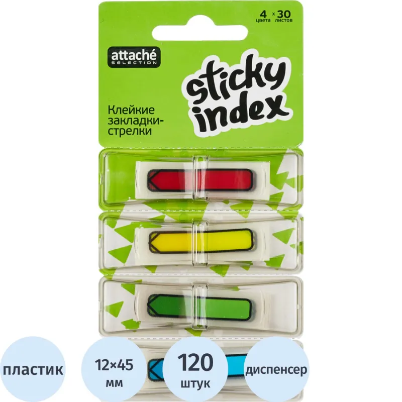 Клейкие закладки пласт. 4цв.по 20л. 12ммх45 Attache диспенсер