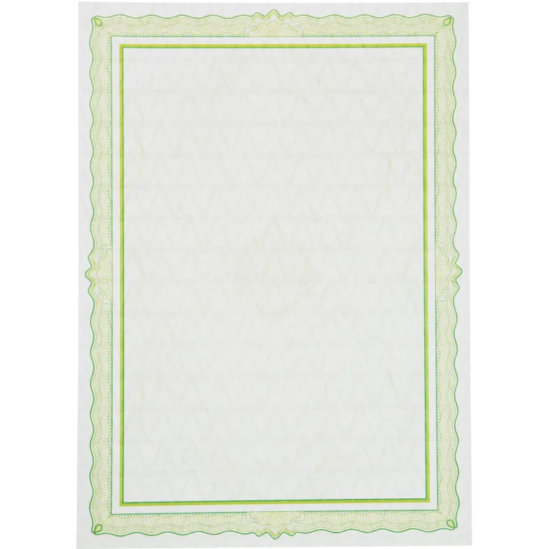 Сертификат-бумага А4 Attache зеленая рамка с водяными знаками, 50шт/уп