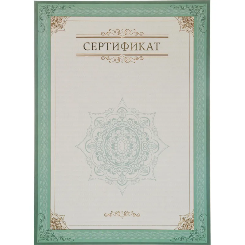Сертификат-бумага А4 Attache зелен рамка с узором с водян знаками, 50шт/уп
