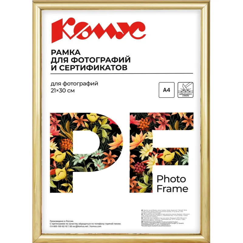 Рамка А4 21x30 см Комус/ATTACHE пластиковый багет 14мм золотистая