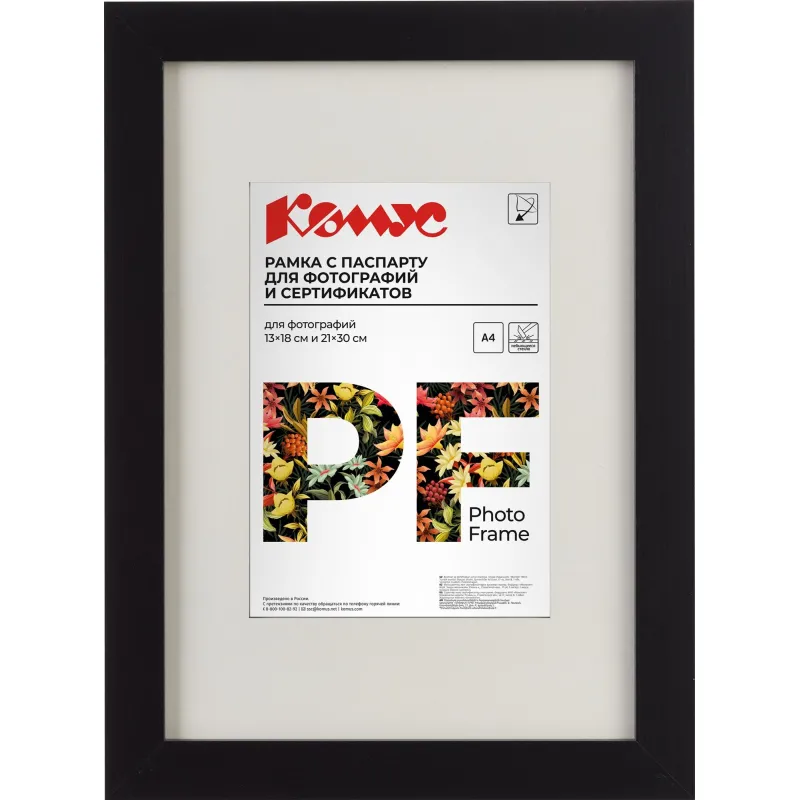 Рамка с паспарту А4 21x30 см Комус/ATTACHE МДФ багет 18мм черная