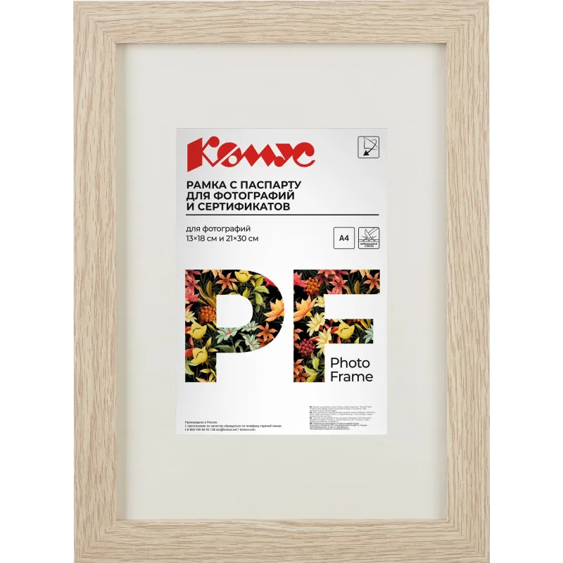 Рамка с паспарту А4 21x30 см Комус/ATTACHE МДФ багет 18мм бежевая