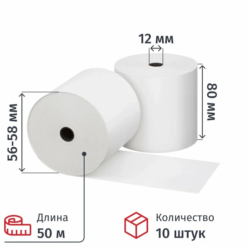 Ролики для касс 80 мм 80м вт.12 т/б 44гр/м2 8шт/уп (спайка)