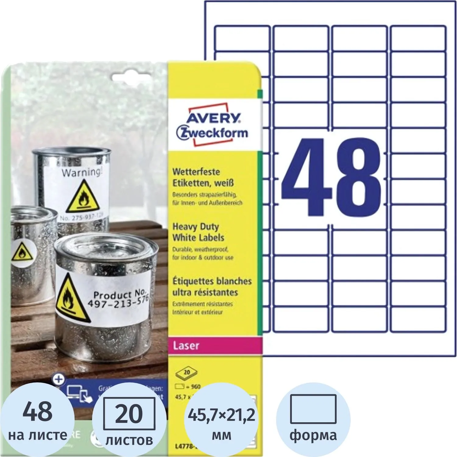 Этикетки самоклеящиеся L4778-20, 45,7x21,2 см, полиэстер, бел,960ш, 20л/уп