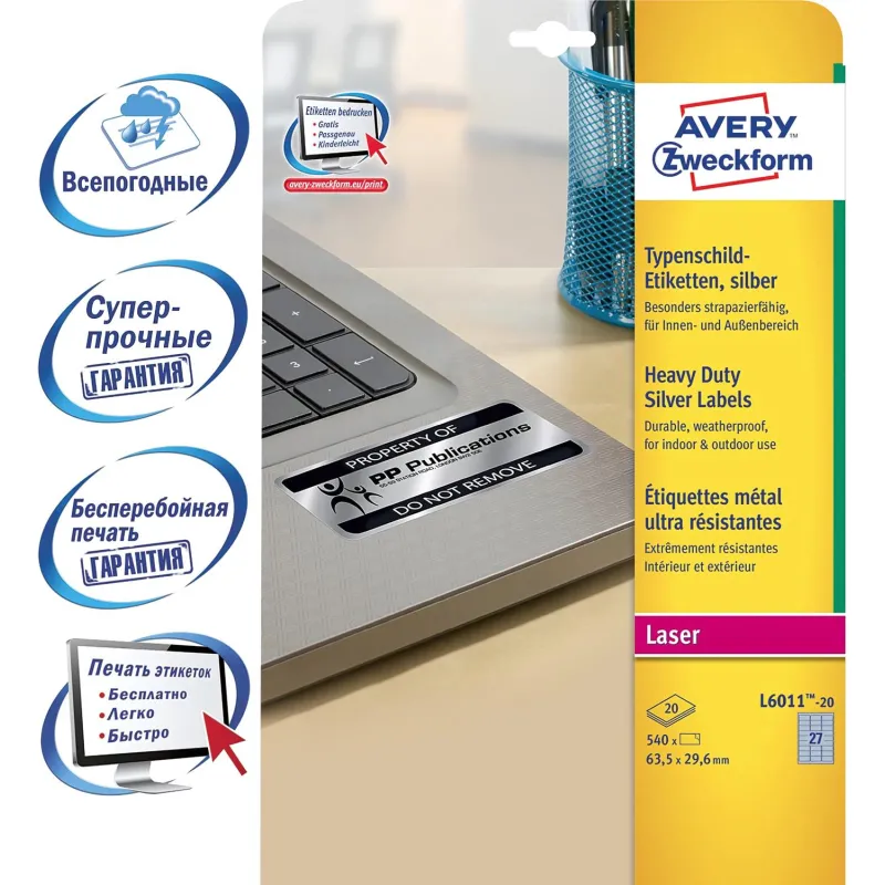 Этикетки самоклеящиеся L6011-20 Серебристые, 63.5x29.6мм,L,540 шт/уп