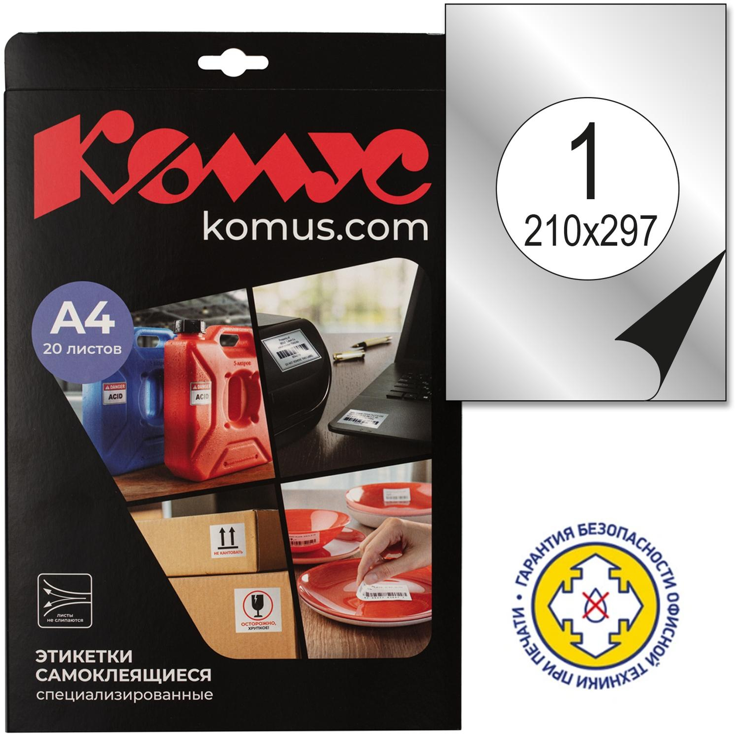 Этикетки самоклеящиеся Серебристые, 210x297мм,А4, 20л.уп