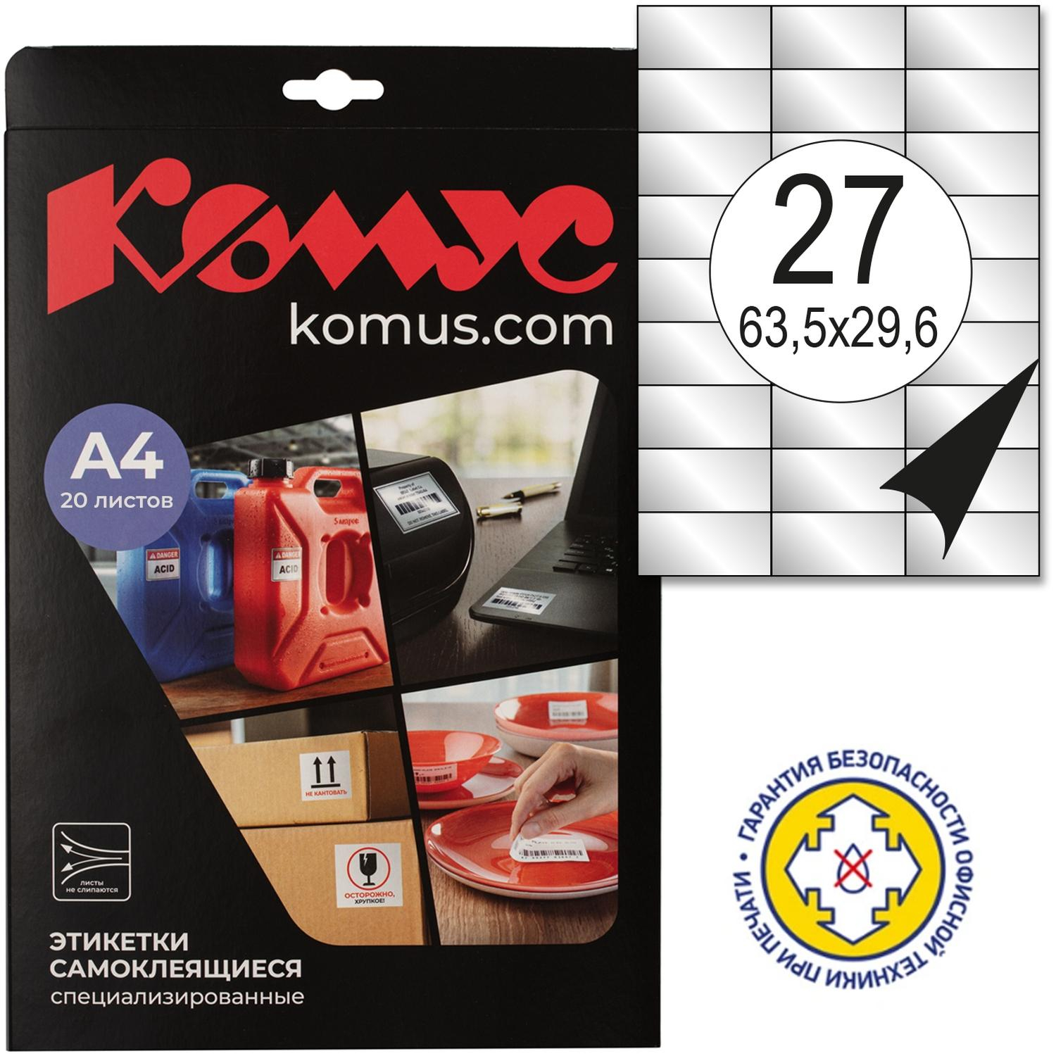 Этикетки самоклеящиеся суперкл. L7874-20,63,5x29,6мм белые 27шт/л А4,20л/уп