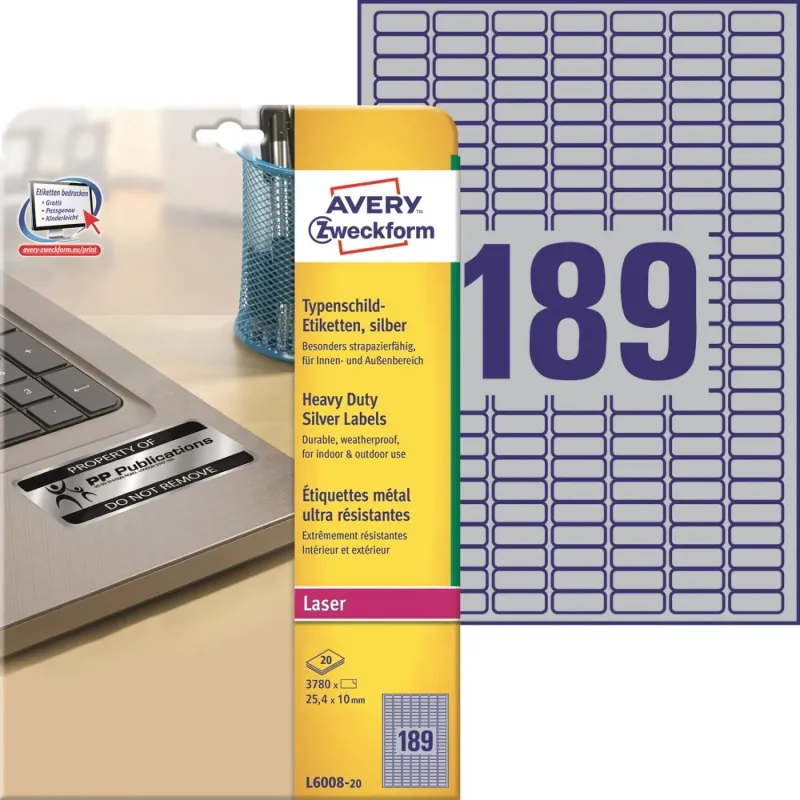 Этикетки самоклеящиеся L6008-20 25,4 x 10 мм, L серебристые, 3780 шт, 20 л
