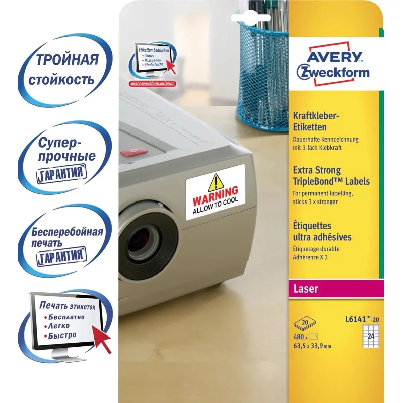 Этикетки самоклеящиеся супер стойкие L6141-20, 63,5х33,9мм, 20л.480шт/уп