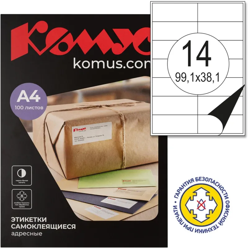 Этикетки самоклеящиеся Адресные бел,99.1х38.1мм.14шт на лисА4