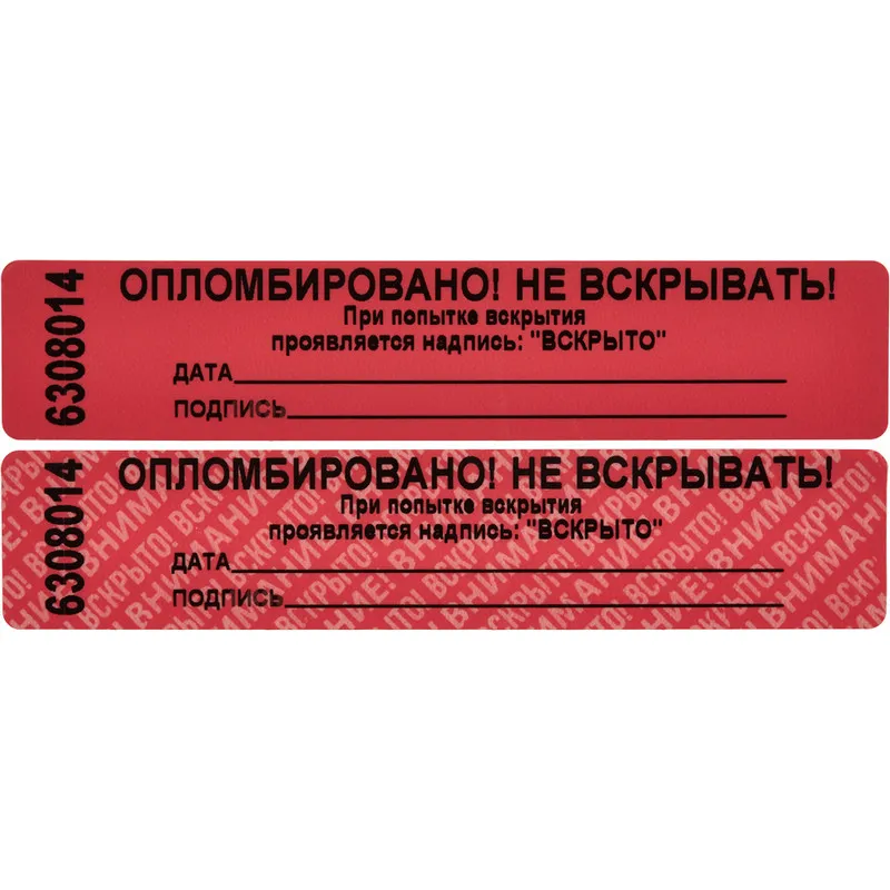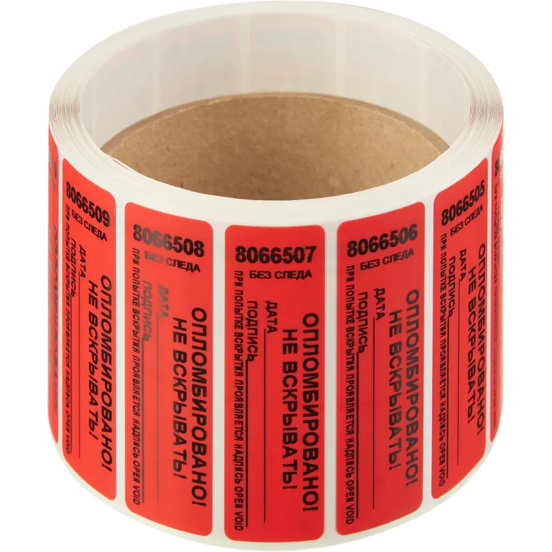 Пломба наклейка (стандарт) 100/20,цвет красный, 1000 шт./рул. без следа