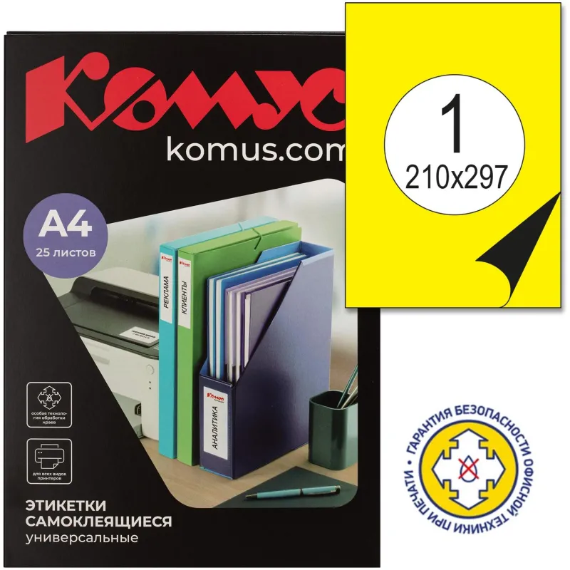 Этикетки самоклеящиеся 210х297мм, 80г желтая (25л./уп.)