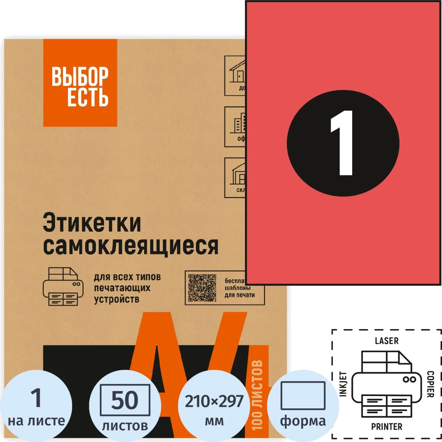 Этикетки самоклеящиеся 210х297мм красная 1шт/л А4 50л/уп