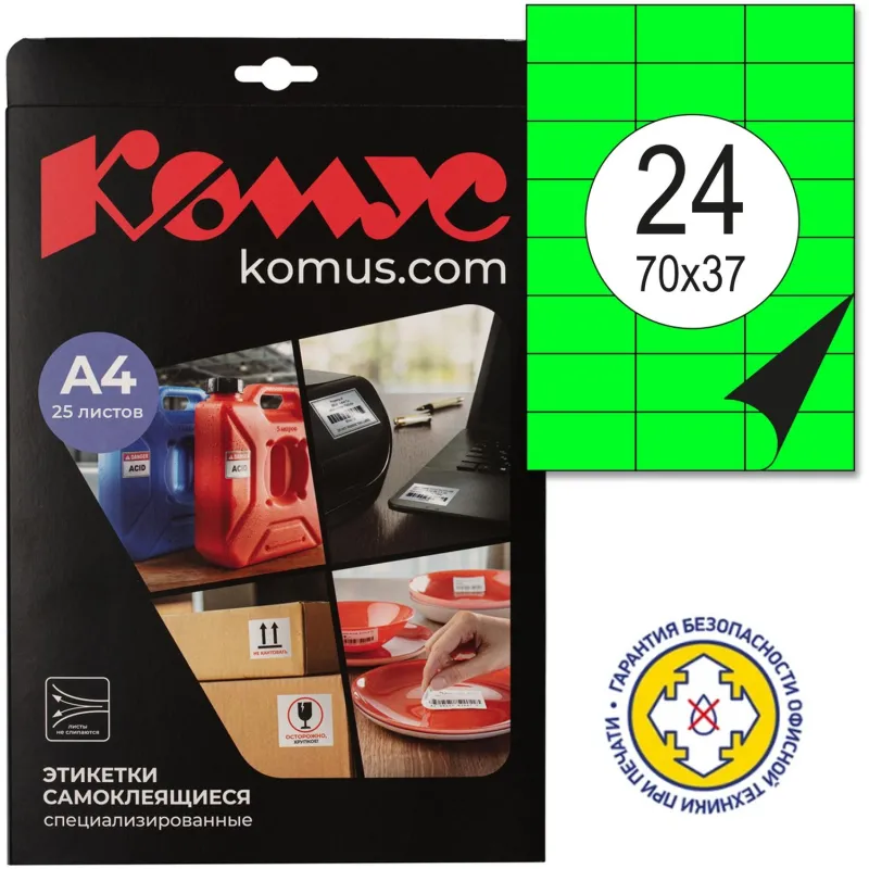 Этикетки самоклеящиеся 70х37мм зеленая 24ш/л А4 25л/уп