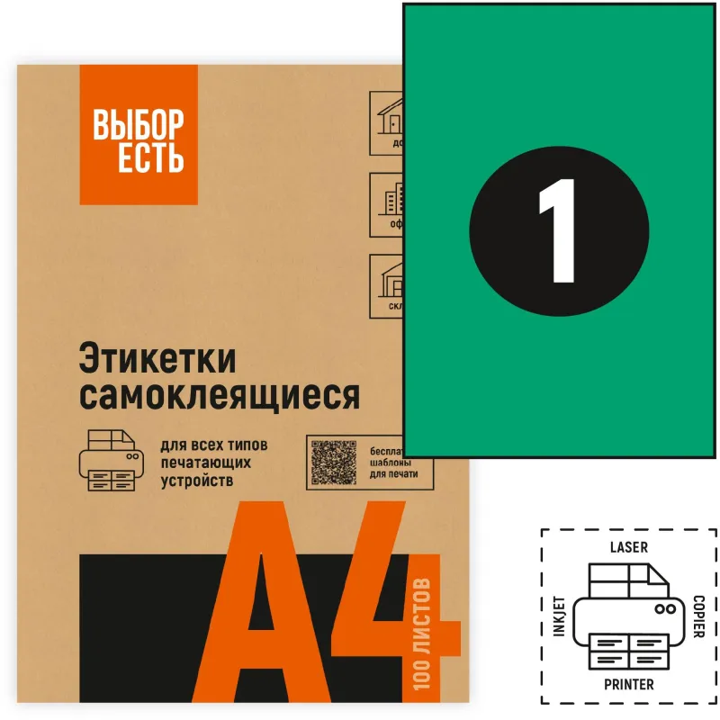 Этикетки самоклеящиеся 210х297мм, 80г зеленая (100 лис/уп